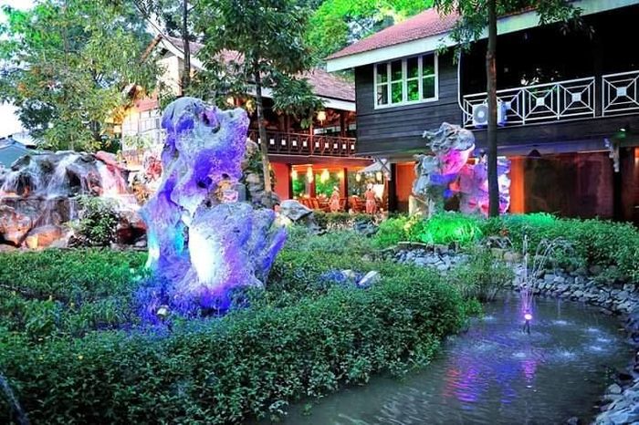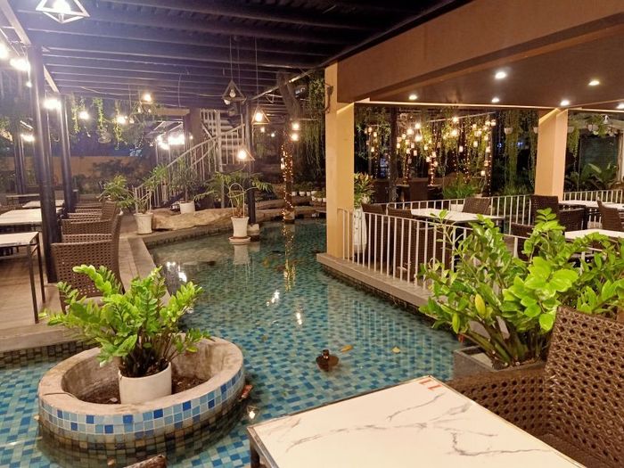 Cafe Vườn Đá is a garden café set in a spacious 7000m2 area, surrounded by a wealth of greenery, flowers, and shaded trees. A gentle stream winds through the space, with hundreds of koi fish swimming gracefully, while imposing stone structures, some reaching up to 3-4 meters high, enhance the café's distinctive and tranquil ambiance. Every evening, live music performances featuring piano, guitar, and violin fill the air with soothing melodies, creating a serene atmosphere. If you're a Bolero music fan, join the special music nights on Wednesdays and Fridays, showcasing classic love songs from the pre-war era, performed by talented lounge singers.