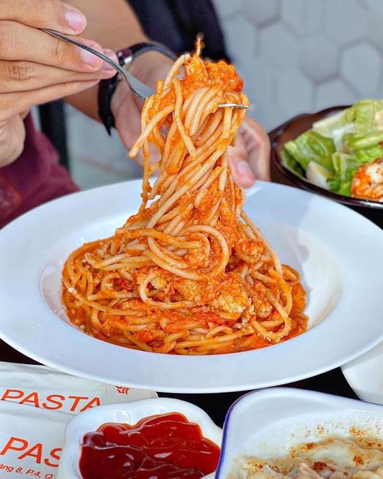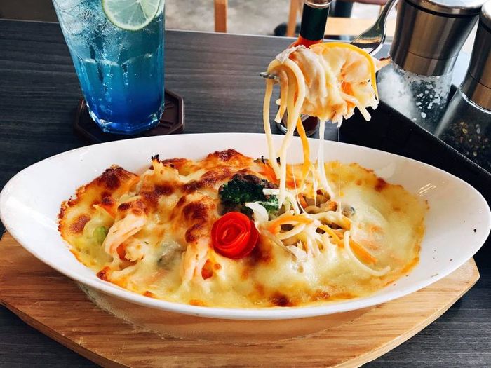 Some standout dishes include: baked spaghetti with minced beef, spaghetti with minced beef and eggplant sauce, spaghetti with creamy chicken sauce, and spaghetti with smoky bacon cream sauce. Beyond spaghetti, there are plenty of other tempting dishes to try. The cozy, air-conditioned atmosphere, combined with an extensive menu from both Asian and Western cuisines, makes it a perfect spot for a fun weekend hangout. The newly revamped space is even more Instagram-worthy with more angles for photos, and the spacious layout creates a delightful, lively environment for guests to enjoy.