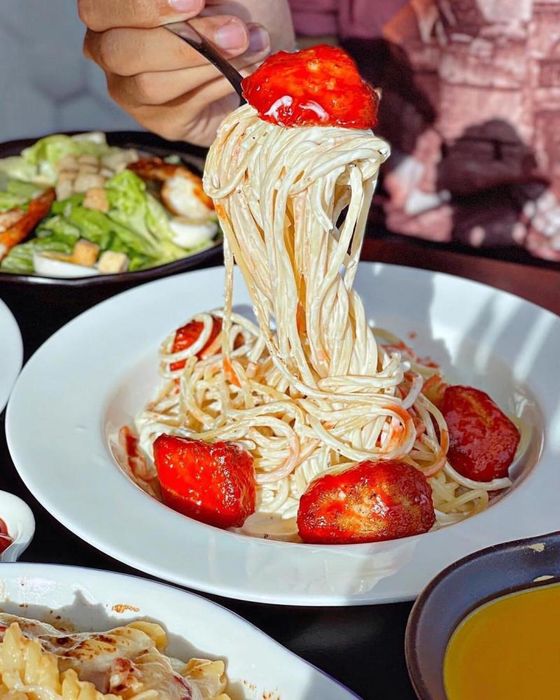 Pasta House - Spaghetti is highly praised for both its food quality and ambiance. Each dish is meticulously crafted by skilled chefs with years of experience. The diverse menu offers over 15 different pasta variations, ranging from traditional to innovative, incorporating seafood and meats: Spaghetti with minced beef and cheese, Spaghetti with minced smoked meat and tomato cheese sauce, Spaghetti with smoked meat and cream sauce, Crispy chicken spaghetti in cream sauce, Mushroom cream spaghetti, and more. The beautifully plated dishes are sure to impress. The restaurant’s cozy atmosphere makes it an ideal place for intimate gatherings or a casual meal with family and friends. Whether you're enjoying a meal or sipping dessert, the warm ambiance sets the perfect mood for delightful conversations. Pasta House - Spaghetti is a wonderful spot for romantic dates or family outings, offering a variety of flavors that will make you fall in love with Italian cuisine all over again.