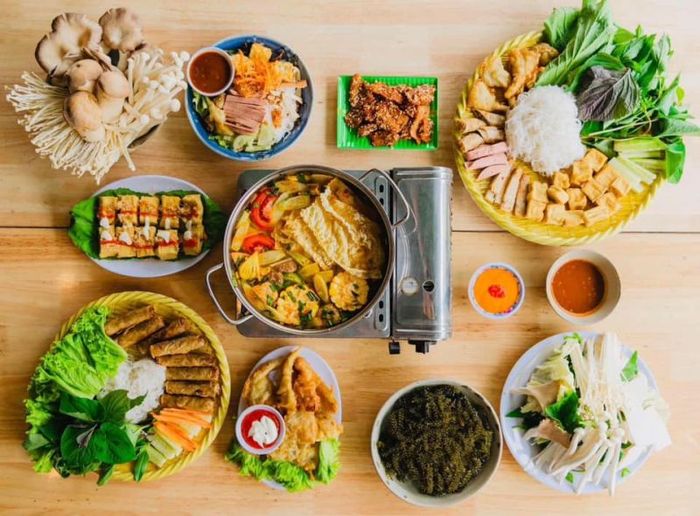 If you're looking for a new spot to enjoy vegetarian hotpot, Green Kitchen An Duyen Vegetarian Restaurant is a must-visit. Every dish here is crafted with care, from preparation and presentation to taste. The restaurant offers appetizers, main courses, and a variety of vegetarian hotpots to provide a complete dining experience. You can also browse their menu on their Facebook page, where each dish is accompanied by pictures and prices, including buffet options. The food served at the restaurant is just as visually appealing and delicious as shown in the photos.
