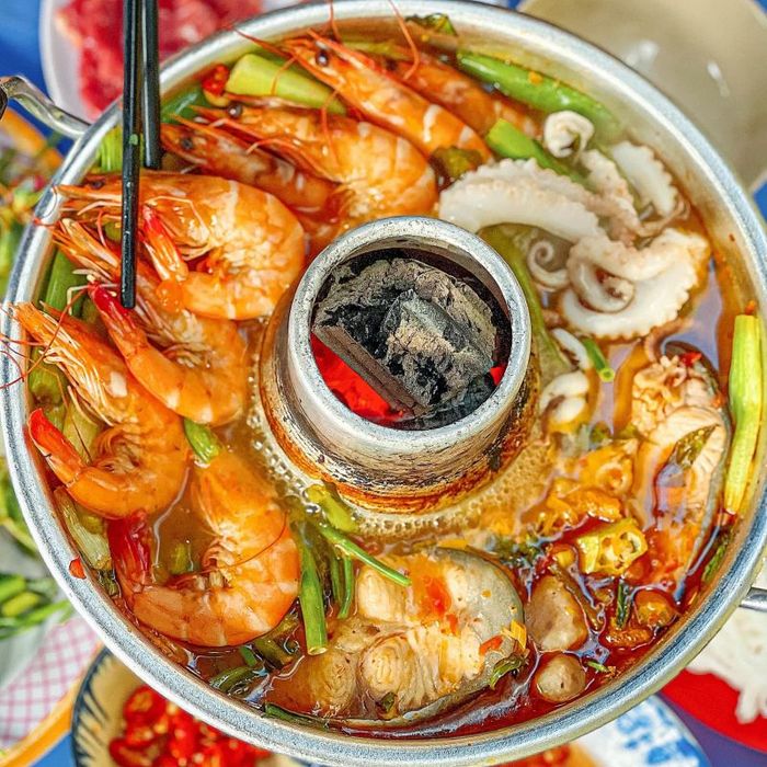 Dong Huong Goat HotpotLocated within Landmark 81, MK Hotpot is a premium restaurant that promises unforgettable culinary experiences. The restaurant boasts a luxurious ambiance and professional service, which are major highlights. MK Hotpot is renowned for its delicious and high-quality seafood hotpot. A bubbling pot filled with rich broth, accompanied by an array of seafood including squid, shrimp, fish balls, clams, and fresh vegetables, as well as noodles, creates a tantalizing feast for food enthusiasts. Amidst the plethora of seafood options, watching them cook in the pot and anticipating their perfect readiness is a delightful experience. The combination of fresh seafood and flavorful broth, with a hint of sweetness and distinctive taste, ensures a satisfying dining experience worth the price. Therefore, make a reservation at MK Restaurant to indulge in a hotpot feast with fresh seafood alongside friends and family.