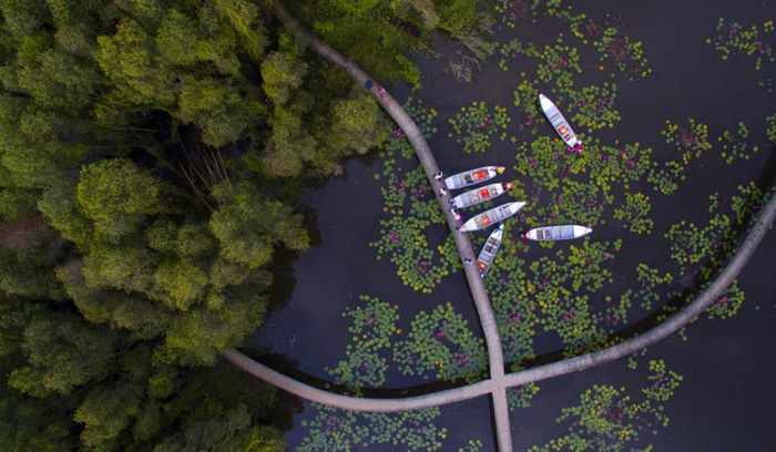 During your visit to this village, you’ll have the chance to engage in exciting experiences such as walking along trails through the forest to explore the surrounding scenery or taking a boat through narrow waterways lined with cajeput trees. Each season brings a unique beauty to Tan Lap Floating Village.