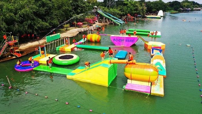 In addition to the spring baths, Suoi Mo Park offers a variety of fun water-based activities such as an inflatable obstacle course suitable for all ages, where you can enjoy bouncing on large inflatable mats floating on the water. A unique attraction is the “baby bottle feeding” game, where you can feed colorful Koi fish with baby bottles. For those seeking thrills, the park also features a multi-lane water slide, bumper cars, and a leisurely bike ride around the park to explore the stunning scenery at your own pace.