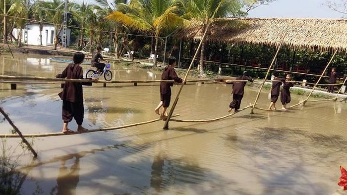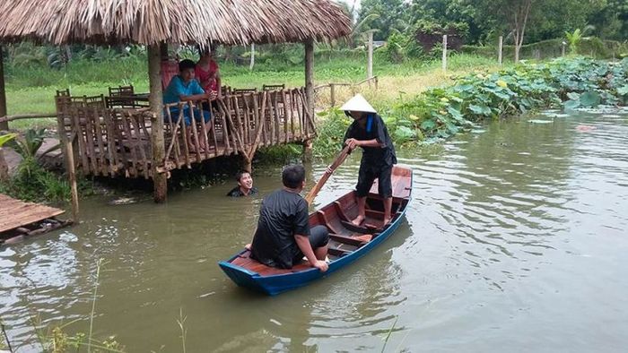 CallOng De Eco-Tourism Area in Can Tho is a well-known eco-tourism destination, perfect for group activities. The lush, green surroundings make it a great place to relax and reconnect with nature. It's also famous for its delicious local specialties. For those looking to escape the hustle and bustle of city life, Ong De offers the perfect retreat, where you can indulge in childhood games and experience a peaceful rural atmosphere. The activities here are deeply connected to the river culture, using traditional tools like boats, bamboo rafts, and rice sacks. Visitors can enjoy fun activities such as mud sliding, crossing monkey bridges, and even participating in a one-day farmer experience, team-building exercises, and sack races.