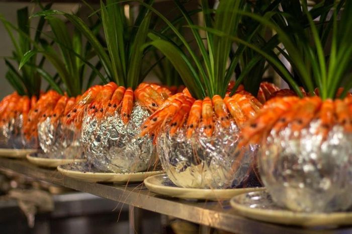 You'll be impressed as soon as you step through the gates of Royal Palace Restaurant due to its architecture steeped in tradition, with curved arches, red tiled roofs, wooden columns,... The interior space is quite spacious and cool, thanks to the many green trees planted around. There are many ancient trees preserved here. The houses are designed in the style of royal tombs, and the scenery might remind you of the ancient capital of Hue. In addition to the quick and caring service quality, the menu here is extremely diverse, rich for guests to choose from freely. The dishes are skillfully prepared by experienced chefs with fresh and delicious ingredients. The food served is always hot and beautifully presented.