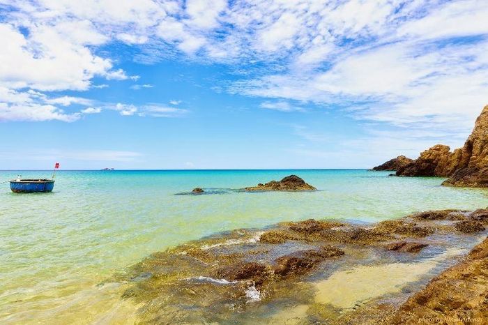 Visiting Đảo Bé, you will enjoy the fresh air, a pristine, romantic, and peaceful scene with long stretches of white sandy beaches, along with clear blue seawater. Walking around the beach here, you can easily encounter many stretches of dark black rocks along the coast, which are remnants of the volcano left millions of years ago, looking very eye-catching. Here you will be instructed by fishermen on some basic diving techniques to easily access the colorful coral reefs here. Then is the time when you will be swaying on the coracles to reach the colorful coral reefs of the sea here.