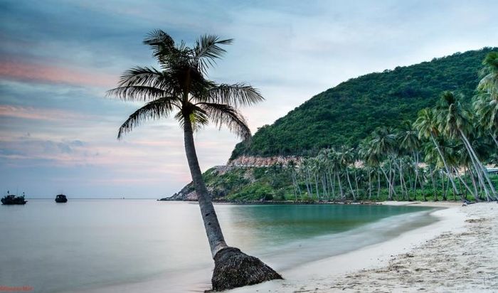 Cây Mến Beach is renowned as the most beautiful beach on Hon Củ Tron, nestled in a small azure bay, enticing with its pristine white sand, crystal-clear and clean seawater, adorned with coconut trees swaying gently, casting their shadows. The best time to fully appreciate the beauty of Cây Mến and the islands in Nam Du is during spring, from January to March, when the beach is not only calm but also has clear, warm seawater.