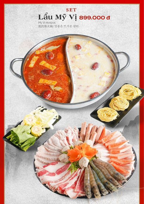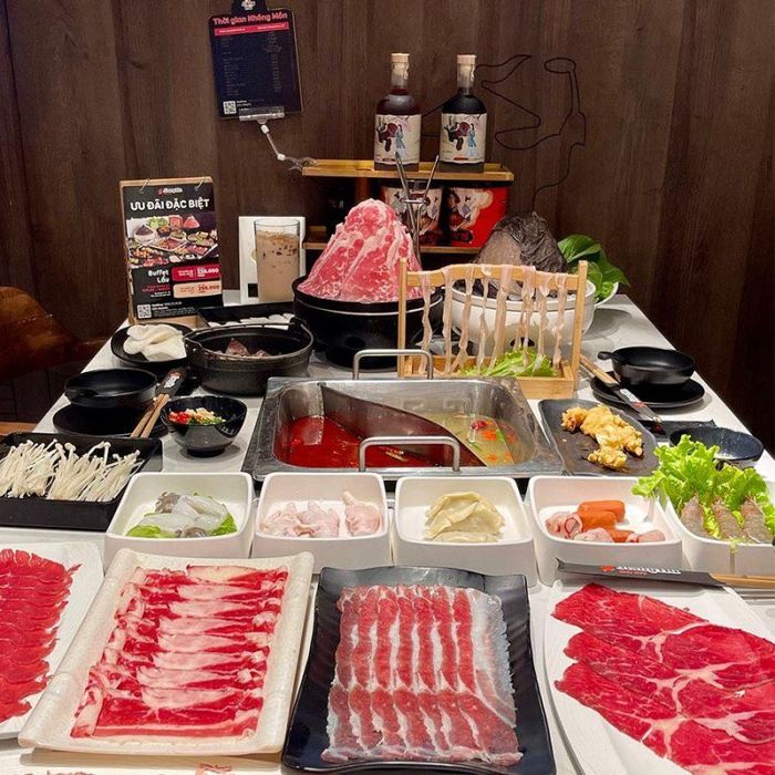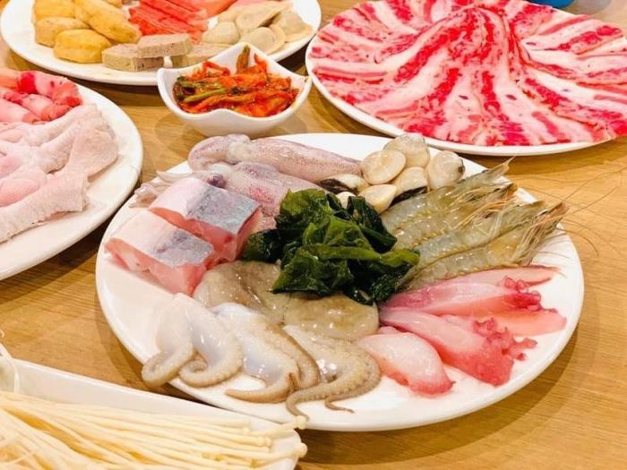 Located at 989 Giải Phóng, Lẩu Phan offers a buffet-style dining experience with an extensive range of delicious dishes, including Australian beef belly, brisket, shank beef, meatballs, noodles, tofu, fresh mushrooms, and much more. Alongside the hot pots and dipping items, enjoy a variety of side dishes like Popcorn Beef, Seaweed Salad with Crab Eggs, and Sweet Potato Sticks. A wide selection of beverages, including wine, beer, soft drinks, and mineral water, are also available for a complete dining experience.