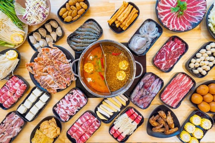Have you heard of JiangHu Heroes' Hotpot? If you're unfamiliar with this unique Chinese-style frog hotpot, head over to Aeon Long Bien for a delightful buffet experience! Inspired by the legendary Jiang Hu club from Chinese folklore, this restaurant blends modern and traditional styles, offering a warm and inviting atmosphere that recreates the ambiance of ancient Chinese feasts. The ingredients used here are carefully selected and marinated to perfection, while the hotpot broth is meticulously crafted with a variety of herbs and spices.