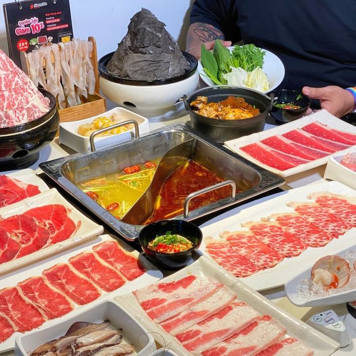One of the most popular buffet-style two-section hot pot spots in Hanoi that every hot pot lover knows is Hotpot Story. This brand is famous for offering five international hot pot flavors: Suki, Tomyum (Thailand), Sichuan (China), Miso (Japan), and Bulgogi (Korea). A visit to Hotpot Story is like a culinary journey across various regions, offering some of the best dining experiences.