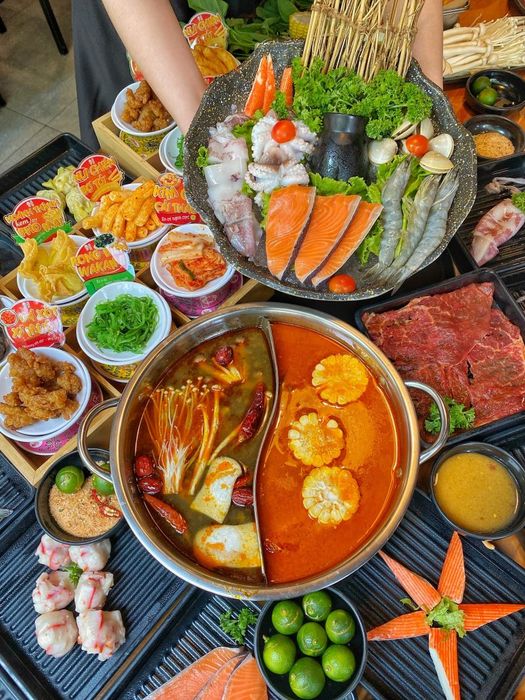 IPOT- Buffet Nướng Lẩu is a well-known name among fans of Chinese cuisine. One of its highlights is the two-compartment hotpot, allowing guests to enjoy two different flavors at the same time. Paired with a variety of fresh and delicious ingredients, this unique feature will certainly satisfy even the most discerning customers. You can choose from four irresistible hotpot broths at IPOT- Buffet Nướng Lẩu, including: Thai hotpot, Hong Kong herbal hotpot, Hong Kong chicken hotpot, and mushroom hotpot. Not only does IPOT serve authentic and flavorful Hong Kong-style hotpot, but it also boasts a spacious dining area that can accommodate up to 150 guests, making it an ideal venue for your next party or gathering.