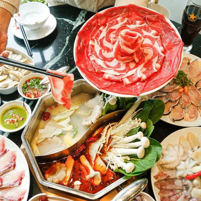 Although relatively new to Hanoi, Haidilao has quickly gained popularity due to its delicious, diverse dishes and outstanding customer service. This chain specializes in high-quality hot pot, showcasing the best of Chinese culinary traditions. Each hot pot flavor at Haidilao offers a unique experience, allowing diners to appreciate the expertise of the chefs. Unlike buffet-style dining, Haidilao serves à la carte with a wide variety of ingredients ranging from meats and seafood to vegetables, noodles, and mushrooms. The hot pot broths include several flavors (Bone Broth, Mushroom Broth, Thai Hot Pot, Tomato Broth, Herbal Hot Pot, Pickled Cabbage Hot Pot, Spicy Oil Hot Pot, Sweet and Sour Hot Pot). You can choose between single, two, three, or four-section pots to sample different flavors.
