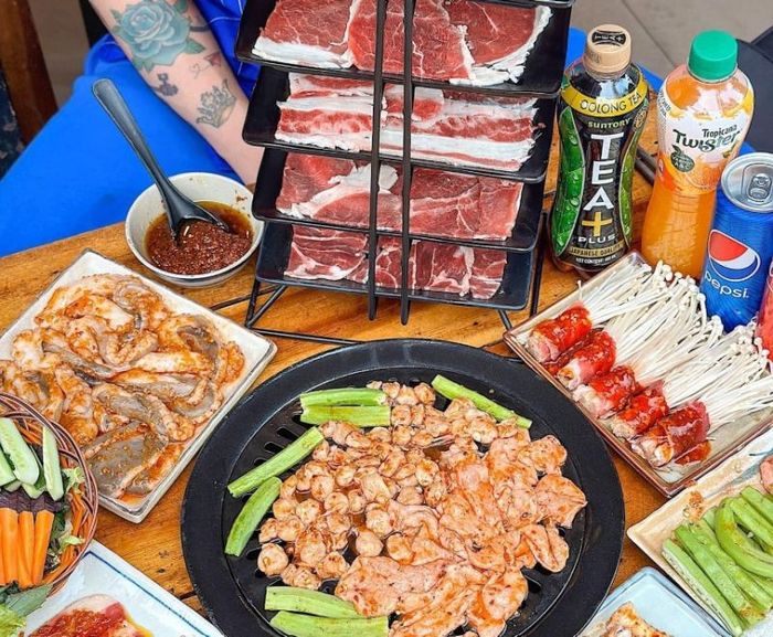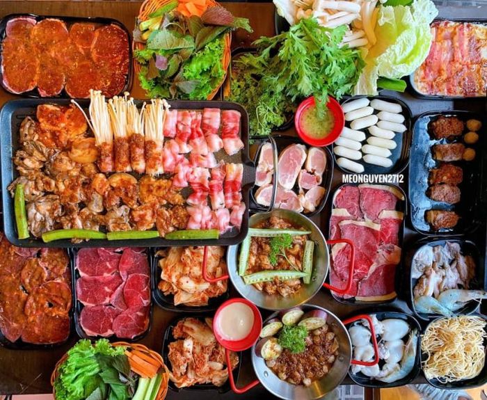 CallKing BBQ is a familiar restaurant among Saigonese teens, especially those who are passionate about Korean cuisine. With an extremely diverse menu offering over 200 dishes, customers are delighted and comfortable to choose their meals at the restaurant. The highlight of the grilled dishes here is the dipping sauce, specially formulated with a perfect balance of sourness, spiciness, and sweetness. This sauce paired with grilled meat is irresistibly delicious. Not only attracting customers with the barbecue buffet, but the hot pot buffet at King BBQ also receives positive feedback.