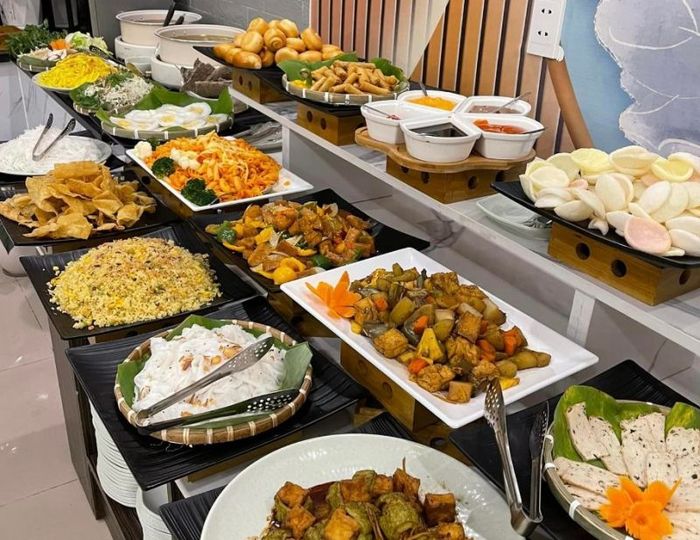 For a unique buffet experience in Binh Thanh District, you can try Zen Vegetarian Buffet. The buffet price starts from 120,000 VND per person, including all vegetarian dishes and drinks. Zen Vegetarian Buffet offers a rich and diverse menu with meticulous ingredient selection to ensure delicious and high-quality dishes. Most of the vegetarian dishes are homemade and regularly rotated to keep the guests satisfied.