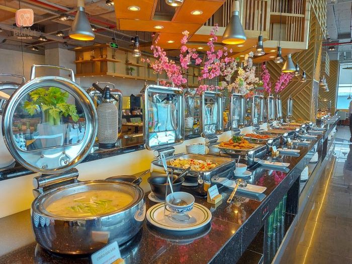 Hoang Yen Buffet at Pearl Plaza has a capacity of 250 guests, designed in a modern style to bring excitement to those who have set foot here. The food counters are cleverly arranged along the room for guests to conveniently move around to get food. At the same time, the professionally trained staff, with their caring and polite service, are also a plus point of the restaurant.