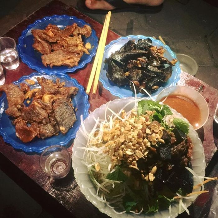 This salad features dried beef along with various offal like stomach, spleen, cartilage, liver, and tendons, all sliced to the perfect bite-size with a chewy, crisp texture. What sets this salad apart is the addition of fried garlic and golden shrimp, which bring an irresistible aroma to the dish. Despite serving a few simple snacks like Lim salad and dried beef salad, this place has built a loyal following over the years, especially popular with young people. It's not just the unique flavor and traditional recipe, but also the high standards of cleanliness and excellent service that make Lim Salad so beloved.