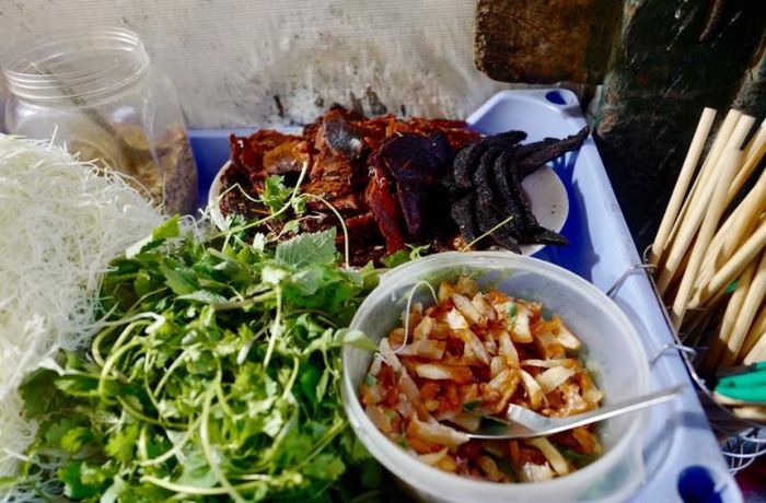 If you're in the Nghia Tan market area, don't miss out on trying the unique twist on dried beef salad at Mr. Phuc’s Dried Beef Salad. This hidden gem is renowned for offering some of the most creative variations of the traditional dish, including options like dried beef with fermented rice powder or dried beef paired with tapioca dumplings. The combination of flavors at this place gives you a completely different and exciting culinary experience.
