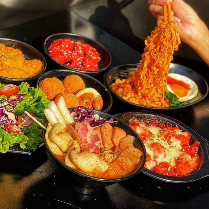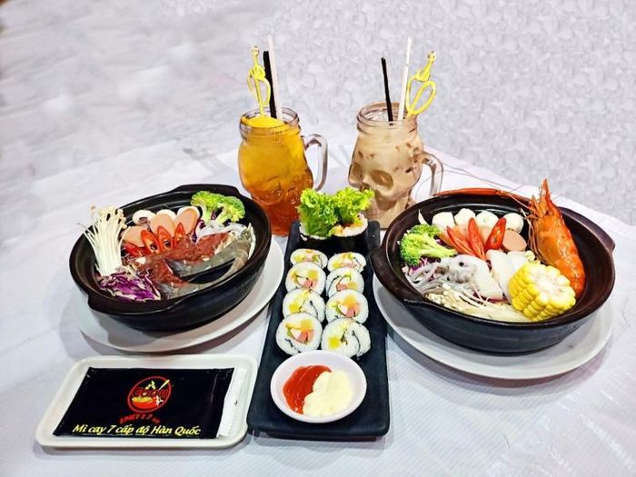 Located at 643 Xô Viết Nghệ Tĩnh, Hachi Spicy Noodles is a popular destination for spicy noodle lovers. The restaurant offers a spacious, clean, and well-ventilated atmosphere, providing a comfortable setting for a meal. Hachi's menu is diverse, featuring not only spicy noodles but also rice cakes, kimbap, hotpot, and more. The spicy noodles here are loaded with squid, shrimp, and fish cakes, and the broth is flavorful and hearty.