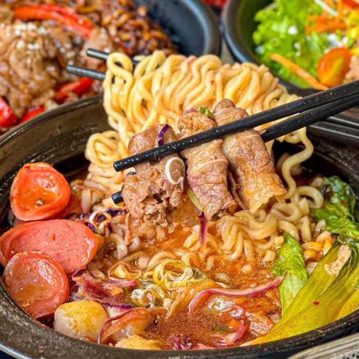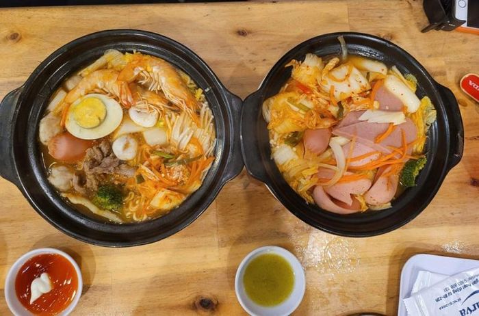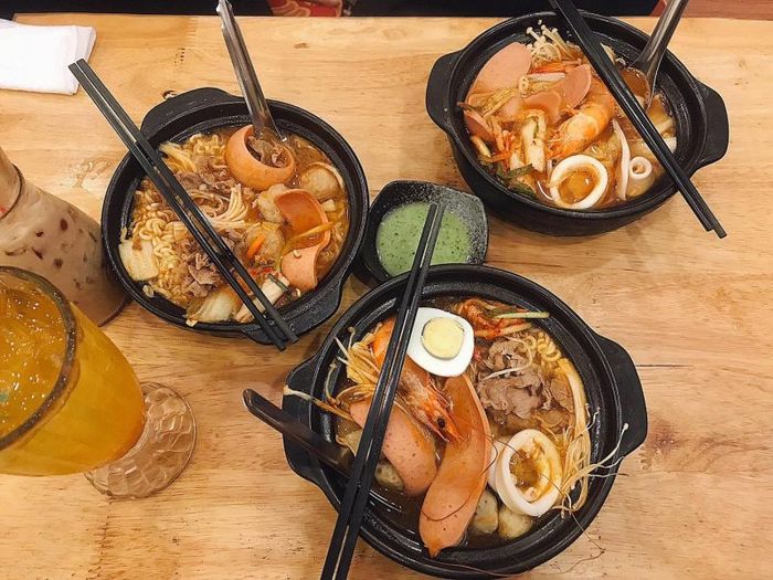 When the spicy noodles arrive at your table, the alluring aroma immediately excites your senses. Mì Cay Haseyo focuses on high-quality ingredients, with fresh accompaniments like fish balls, sausages, beef, and seafood. The broth is rich with kimchi flavor, offering a perfect balance of sourness and spiciness, which is the hallmark of the restaurant. The noodles here are loved by many young people in Ho Chi Minh City for their excellent taste, authentic Korean flavor, and variety of toppings like shrimp, fish balls, squid, mushrooms, and cabbage, making for a truly delightful meal. If you visit Ho Chi Minh City, don't miss Mì Cay Haseyo!