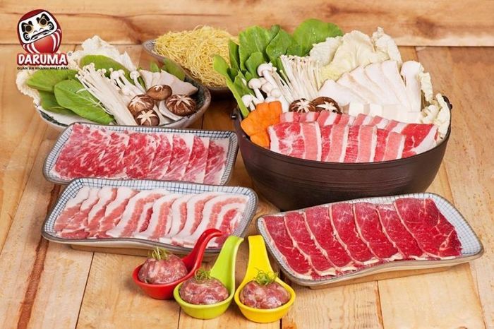 Speaking of delicious hotpots at Daruma Restaurant is speaking of the nutritious and refreshing Japanese hotpot style. A hotpot serving at this top hotpot place comes with a variety of fresh vegetables, imported meats, live seafood, udon noodles, and traditional ramen. Delicious hotpot, unique dipping sauces, and a chilled sake cup will take you on an unforgettable culinary adventure to the world of Japanese cuisine. DARUMA - JAPANESE DISHES EVERY DAY with set menus starting from 59,000 VND, sushi dishes from 69,000 VND, authentic Japanese set meals from 109,000 VND, and unlimited Japanese hotpot buffet for only 259,000 VND/person with over 30 dipping ingredients and 4 signature hotpot broths: Nihonsu Sake broth, traditional Sukiyaki broth, spicy and flavorful Miso kimchi broth, or clear and savory mushroom broth.