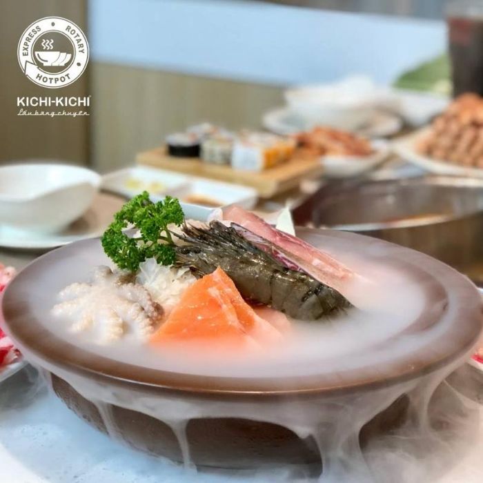With the fun conveyor belt system, you can grab to your heart's content from a variety of tantalizing options including American beef slices, beef tenderloin, shrimp, crab, squid, clams, octopus, and more. Dive into endless dipping delights until your hands tire and your taste buds sing. Despite the emergence of numerous hotpot/grill spots in the culinary market, Kichi-Kichi remains the top buffet hotpot restaurant chain in Vietnam. Its delicious and diverse offerings served in a unique and modern conveyor belt format, which combines the Kaiten-style service from Japan with modern architecture.
