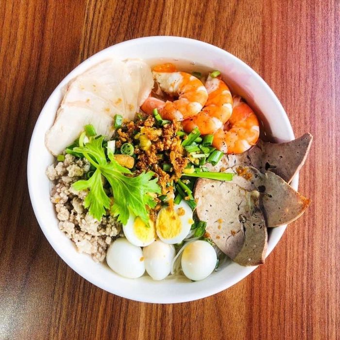 Mì Quảng Hoàng Vân is a variation of the traditional Mi Quang from Quang Nam, adapted to suit the colder climate of Da Lat. For the price of a typical bubble tea, you can enjoy a generous bowl of Mi Quang with a variety of toppings such as seafood, pork ribs, lean meat, or sausage. The rich red-yellow color of the noodles will immediately entice you, and a taste of the broth will surely make you crave it more. The broth is flavorful, slightly sweet, with a hint of savory saltiness that awakens your taste buds. The ingredients, including the meat, sausage, and shrimp, are carefully selected and cooked to perfection.