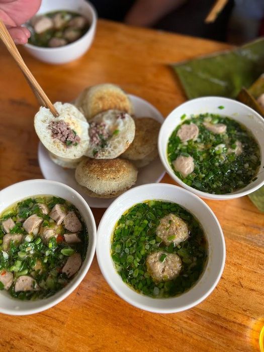 Da Lat has long been known for its delicious pork dumpling banh mi, and Hoang Dieu’s Pork Dumpling Banh Mi (also known as Bánh mì xíu mại Bé Linh) is one of the most popular spots to try this dish in the city. The shop is located at the intersection of Hoang Dieu and Tran Nhat Duat streets. There's also another branch located at 37 Hoang Dieu Street, just 20 meters from the main shop. A serving of banh mi at Hoang Dieu’s consists of a crispy, freshly toasted baguette, served with a dipping sauce containing two pork dumplings, a piece of crispy pork skin, and a slice of sausage. The broth is delicious, with a rich, bone-broth flavor, and the dumplings are firm but not too lean, perfectly balanced in taste without being greasy.