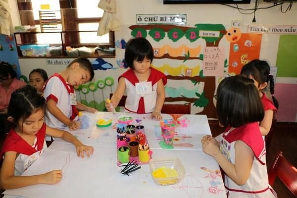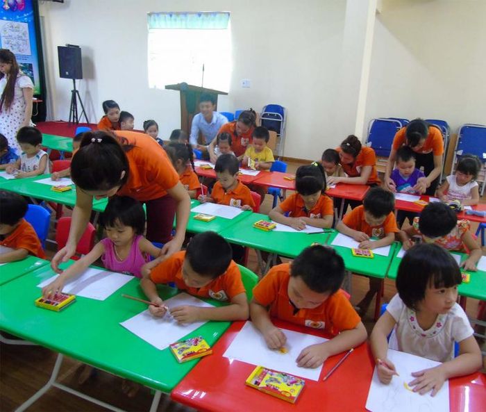 Before starting the drawing session, the teacher sets the drawing time to match the duration of a train journey from station A to station B, passing through all 4 stops. As the train departs station A and begins its journey, the teacher sequentially announces the train's progress through stop 1, stop 2, stop 3, and finally stop 4, as it arrives at station B, signaling the children to stop drawing.