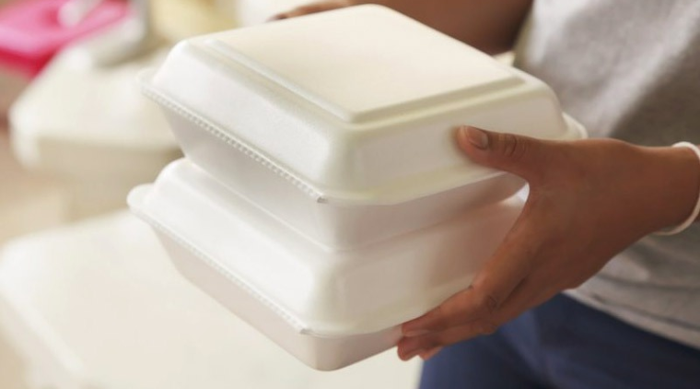 Styrofoam containers are also a form of synthetic plastic, which when exposed to high temperatures, deform and can damage the microwave.