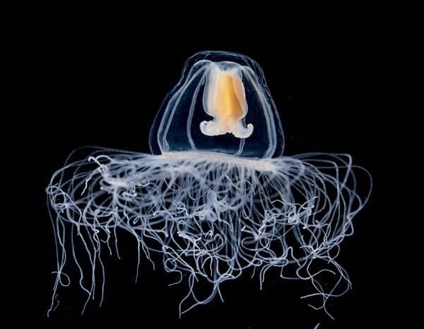The immortal jellyfish belongs to the hydrozoan class within the Cnidaria phylum and is typically found in the Mediterranean Sea and the waters of Japan. Its bell-shaped body measures around 4.5mm in diameter, with a thin membrane, except for a slightly thicker area at the top. The jellyfish's stomach is relatively large and bright red. Juvenile jellyfish are only 1mm in diameter and have 8 evenly spaced tentacles, while the adults have 80-90 tentacles. The immortal jellyfish can reverse its life cycle when injured or starving, meaning it theoretically has the potential to live forever.