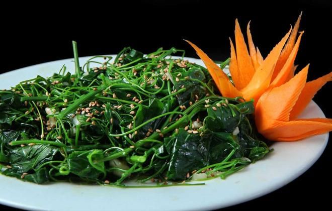 Beefvine, also known by various names like aerial vegetable, crunchy herb, dragon's mane, climbing sweet vegetable... has a resemblance to watercress but with larger, softer, and plumper stems and leaves. People typically use the tender stems and young leaves of beefvine for culinary purposes. The distinctive aroma of beefvine is usually reduced by crushing the leaves to lessen the intensity. However, the delightful sweetness of the vegetable always makes one crave and overlook this peculiar scent.
