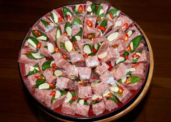 Nham or nham trám is an intricately prepared dish made from betel nuts and is considered a traditional dish of the people of Thái Nguyên. Nham is usually eaten during the ripe betel nut season. A complete nham dish typically includes many ingredients. Among them, betel nuts are indispensable, finely chopped. Nham usually has two types: raw fish nham and grilled fish nham. Raw fish nham only includes fish meat, while grilled fish nham is grilled over charcoal. Mix them together with sesame, peanuts, khế leaves, and nhội leaves, and you have a nham dish with a full, rustic flavor. Nham can be enjoyed with rice paper or rice crackers, both are very enticing.