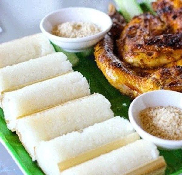 Lighting a big or small fire will make the time it takes to cook the bamboo-tube rice faster or slower, under the skilled hands of women, the bamboo tubes are evenly turned, and the rice grains inside will be more even. When the rice is cooked, the enticing aroma spreads out. In the bamboo-tube cooked rice, there is the flavor of the earth and sky blending, the gentle taste of young bamboo and non, the scent of dewdrops on banana leaves, and the faint shadow of a lively fire in the winter days... When the burned bamboo layer is removed, the bamboo-tube rice is cut into slices, arranged on a plate, the rice is as smooth as a piece of meat, the inviting aroma tempts distant guests to taste. Bamboo-tube cooked rice can be kept for a week without becoming stale or moldy. The bamboo-tube rice is eaten with a mixture of salt and sesame seeds, both rustic and modest, yet unforgettable.