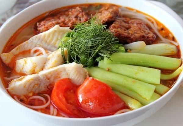 Renowned for its coastal cuisine, Hai Phong Fish Noodles combines the fresh flavors of the sea with the earthy taste of the countryside, creating a dish that has captivated many food lovers. The dish is made using two types of fish: ocean fish and freshwater fish. Mackerel from the sea is used to make delicious fish cakes, while freshwater fish like carp and grass carp are deep-fried until crispy.
