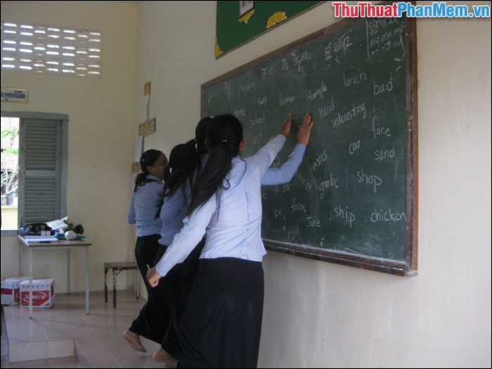 - Two participants stand in front of the board at a certain distance. After hearing the teacher read, they quickly smack their hands on the word the teacher just read on the board. The one who slaps quickly and accurately earns 1 point for their team.