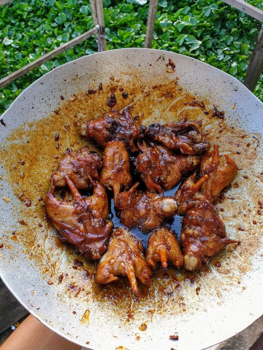 Not everyone can make this soup well. The key is to use free-range chicken or wild chicken (young and tender), and the broth should be made from the chicken’s own stock for maximum flavor. The chicken should be cleaned, dried, and cut into bite-sized pieces. It’s then marinated with shallots (no garlic, as it would overpower the flavor), fish sauce, pepper, and seasoning. After letting it sit for about ten minutes to absorb the flavors, the chicken is stir-fried with shallots and chili until fragrant, then added to the boiling chicken stock. Finally, the wild betel leaves are added, and the soup is allowed to simmer. To achieve the perfect balance of sourness, the betel leaves must be gently squeezed before being added. Once the familiar fragrance of the leaves rises, the soup is ready. Serve it in a bowl, garnished with chili, pepper, and cilantro or Vietnamese coriander, and enjoy.
