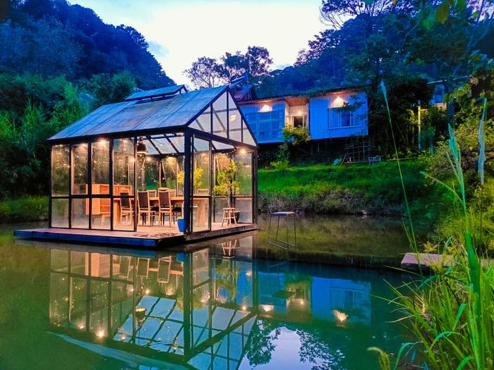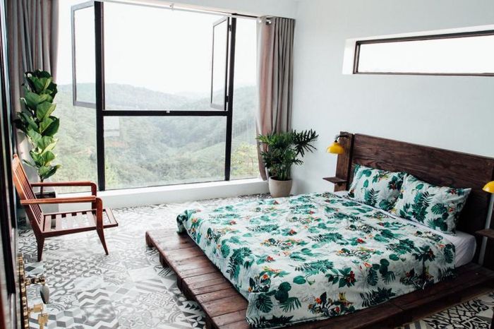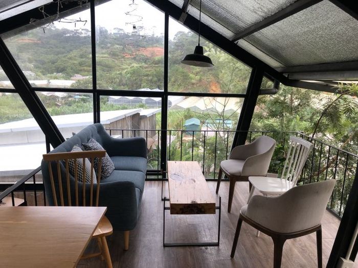 Moonrise Garden Dalat has 3 rooms, each with large glass walls that offer stunning views of the lush valley. During your stay, take a leisurely stroll through the garden, admire the greenery, or relax in the scenic area overlooking the valley for a peaceful moment. In winter, this homestay turns into a winter wonderland, featuring a man-made snow area for snow lovers. The room rate for two people is approximately 300k VND per night.
