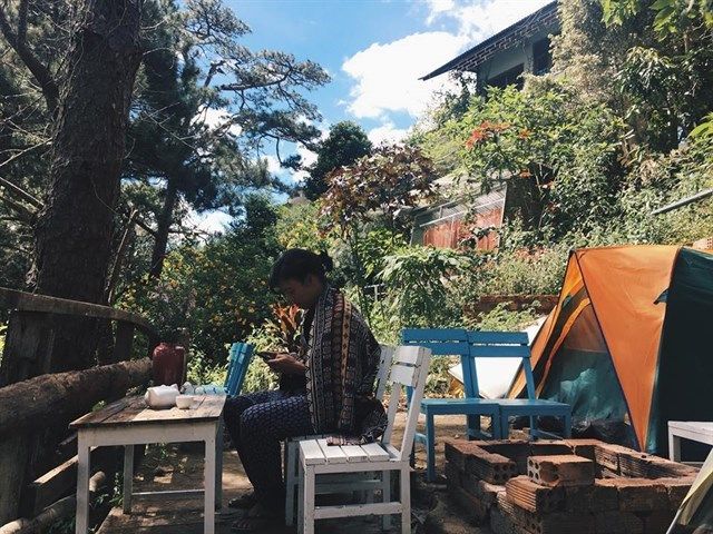 Moreover, there are spacious common areas filled with a variety of books—classic, rare, and timeless works—perfect for leisurely reading during your stay. There's also a kitchen space where you can cook freely. Là Nhà Homestay - Da Lat has a spacious layout with various options for accommodation. In addition to the beautiful villa, you can opt for a dormitory-style room or even rent a camping tent. Room prices range from 300k-650k VND per room, 170k VND per person for the dorm, and 150k VND per tent.