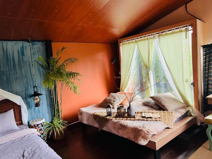 This homestay is nestled in a lush green valley, surrounded by towering mountains and drifting white clouds. It features several wooden cottages and villas designed in a unique architectural style that blends seamlessly with the natural surroundings. The rooms at Cloud Valley Homestay are spacious and beautifully decorated, creating a cozy, nature-inspired atmosphere. Each room has large windows that offer breathtaking views of the valley and nearby mountains. Guests can relax on the balcony or immerse themselves in the peaceful, fresh air.