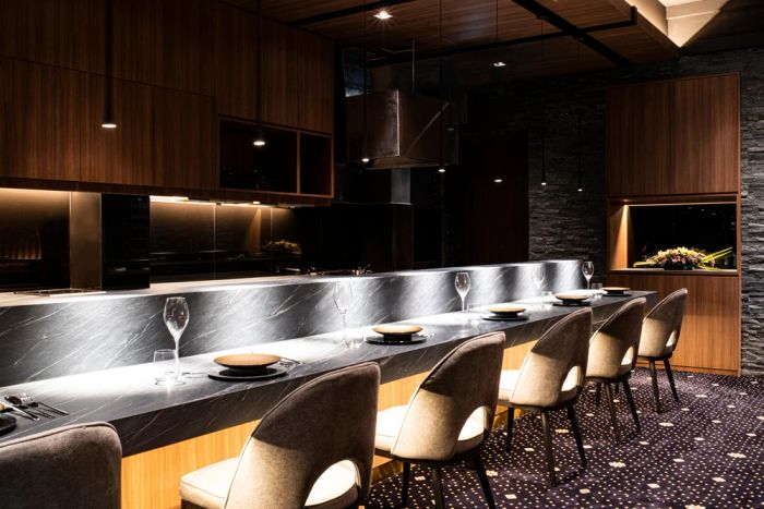 Waku Ghin's interior space is designed to be luxurious and comfortable, creating a warm and intimate atmosphere for dining. Guests also have the opportunity to enjoy magnificent views of Marina Bay from the restaurant.