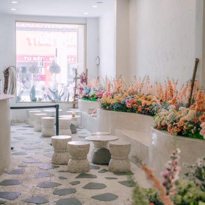Often referred to as a miniature version of Da Lat for the garden cafes in Ho Chi Minh City, Miền Đồng Thảo Cafe is adored for its rows of hydrangeas that fill the air with a rich floral fragrance, creating a serene, windswept atmosphere. Unlike other cafes, Miền Đồng Thảo features a unique tiered design that adds a fresh twist for coffee connoisseurs. Other standout features include a small stream flowing peacefully throughout the day, lush green plants meticulously cared for, and a U-shaped layout with large, smooth stones and wooden elements that create the feeling of a beautiful home nestled in the midst of a vast, breezy meadow.