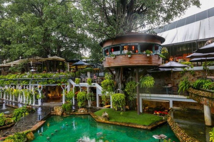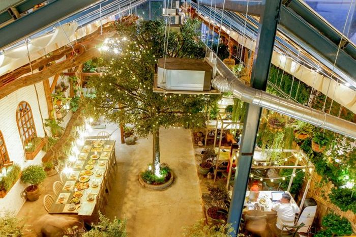 Du Miên Garden Coffee is one of the most unique cafes in Ho Chi Minh City, boasting European-inspired architecture spread over a vast 6,000 m2. From the moment you step through the entrance, you'll find plenty of picturesque spots for photos. Inside, what will likely catch your eye are the 'tree houses' built on ancient trees, creating a one-of-a-kind and fascinating space. There are also plenty of areas for you to relax and enjoy a cup of coffee, including rooftop seating and air-conditioned rooms. The cafe is spacious, with beautiful flowers, lush greenery, and small streams adding to the serene ambiance.