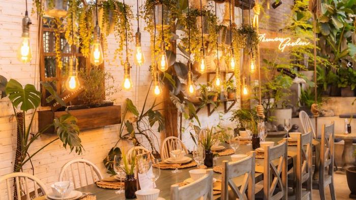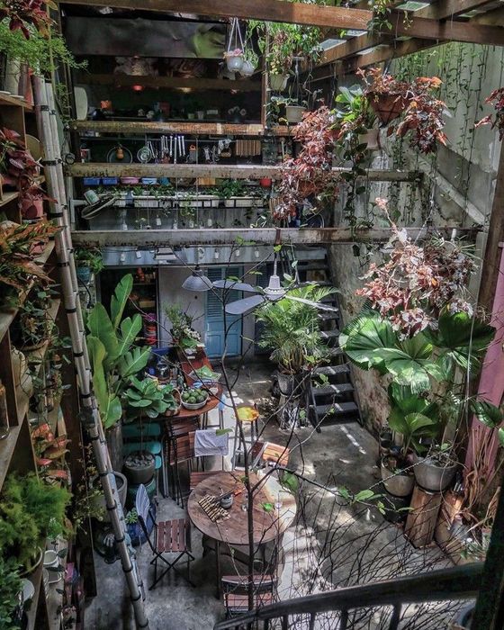 Farmer’s Garden is a chain of cafes owned by local farmers in Ho Chi Minh City, designed with a refreshing green atmosphere and a focus on organic ingredients. The menu offers a variety of delicious food and drinks, with a diverse selection that includes traditional coffee, coffee from machines, smoothies, teas, juices, and pastries. Everything in the cafe, from straws to spoons, is made from eco-friendly materials, avoiding plastic to protect the environment. The space is reminiscent of a European garden, divided into three areas: a cozy boho-style zone with warm brown tones, a lush green garden filled with climbing plants, and a vintage-style mezzanine. On weekend evenings, the cafe hosts acoustic music sessions under the shade of olive trees, offering a romantic and relaxing atmosphere.