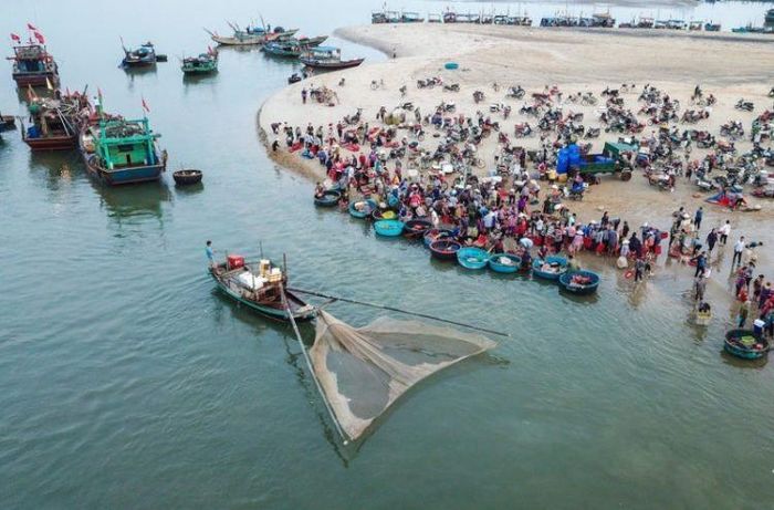 Cửa Nhượng Fish Village is home to fishing families from surrounding provinces, who live and work on small boats. The morning scene here is particularly picturesque, as the sun rises, painting the sea with vibrant colors, while fishermen head out to sea. Visitors can immerse themselves in the tranquil and peaceful atmosphere of the area. Cửa Nhượng is located in Cẩm Nhượng Commune, once known as Nhượng Bạn village. The name is explained by local people as referring to the land, or shore, that was ‘given away’—a reference to a legend involving Hoàng Càn, a concubine of King Trần Khoáng, who negotiated with neighboring villagers to allow fishermen to settle there. The best time to explore Cửa Nhượng Fish Village is at dawn, when the market is bustling and lively. The sunrise over the sea is stunning, with a fresh and comfortable atmosphere, the shimmering silver reflections on the waves, and the boats bobbing up and down, creating a colorful and harmonious watercolor scene.