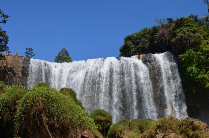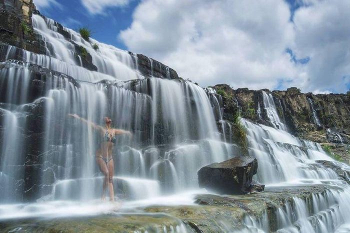 Pongour Waterfall, also known as Seven-Level Waterfall or Heavenly Waterfall, stands at 40 meters high and nearly 100 meters wide, cascading across seven distinct levels. It is the only waterfall in Lam Dong that hosts an annual festival on the 15th day of the first lunar month. During this time, various ethnic groups gather to celebrate with traditional games, music, and dance.