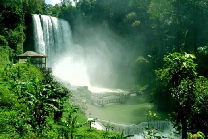 Upon entering the road leading to the Elephant Waterfall, you will immediately feel the refreshing atmosphere, washing away the fatigue of the journey. After turning left from the main road and walking along a sturdy 20-meter concrete path, the waterfall will suddenly appear before you through a mist created by the water spraying from the falls. The powerful water flow creates a breathtaking spectacle. The waterfall is connected by 145 winding stone steps, carefully embedded in the steep cliffside. Some of these steps are made from wooden planks precariously positioned along the edge of the cliff. From the top, you can enjoy a panoramic view of the lush forest, home to centuries-old trees and thick vines, enhancing the mystical allure of the landscape. At the base of the waterfall, there is a mysterious cave called Bat Cave, which stretches 50 meters into the earth. The cave’s entrance is covered in tangled roots and vines, and the deeper you venture, the colder the air becomes, adding an element of excitement to your exploration.