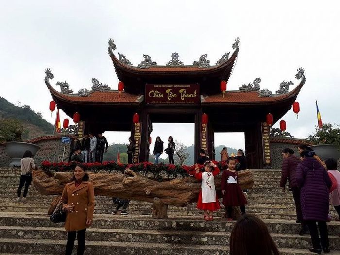 Thành Pagoda is currently the headquarters of Buddhism in Lang Son Province. Not only is it renowned for its stunning religious architecture, but it is also a place for numerous activities that strengthen the connection between spirituality and everyday life. Every year, during the Lunar New Year, Thành Pagoda holds a ceremony where thousands of young Buddhist practitioners gather to chant prayers for blessings and peace. According to the temple's records, over 5,000 young practitioners participate. When visiting the pagoda, you'll notice a large bell weighing 2,100 kg hanging at the main entrance, symbolizing the hope for prosperity and peace for Vietnam in the 21st century. The bell's deep, resonant sound can be heard over a distance of several kilometers. Anyone fortunate enough to hear the bell toll at dusk, with the mist rising over the serene Ky Cung River, will experience a profound sense of tranquility. Inside the temple, you'll find a towering 9-meter-high wooden pillar made from precious ironwood, resting on large stone slabs.