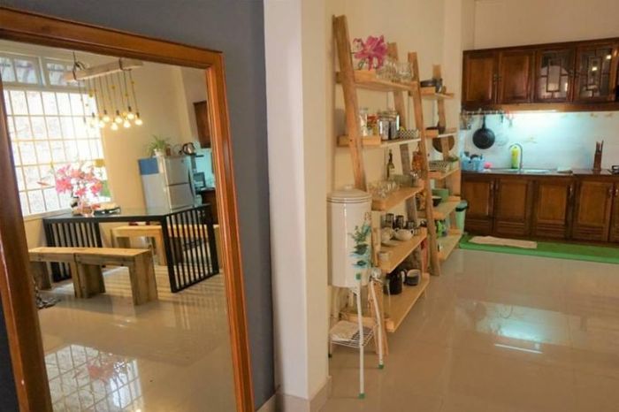 CallDalat Mộc Gia Viên Homestay in Da Lat is one of the most beloved retreat spots in the flower city. Situated within a vast garden full of lush flowers and plants, this homestay provides easy access to famous tourist attractions like Xuan Huong Lake, Bao Dai Palace, Da Lat Night Market, and the Da Lat Highlands. The homestay features a total of 10 charming rooms, each carefully designed and decorated in a typical Da Lat lily style. Every room is fully equipped with necessary amenities to ensure a comfortable stay for guests. The homestay's dining space is also a special highlight. The meals are prepared using fresh ingredients and served in a cozy, quaint kitchen. Guests can enjoy lunch or dinner at the homestay, or indulge in a private meal on their own balcony, offering a peaceful and intimate setting.