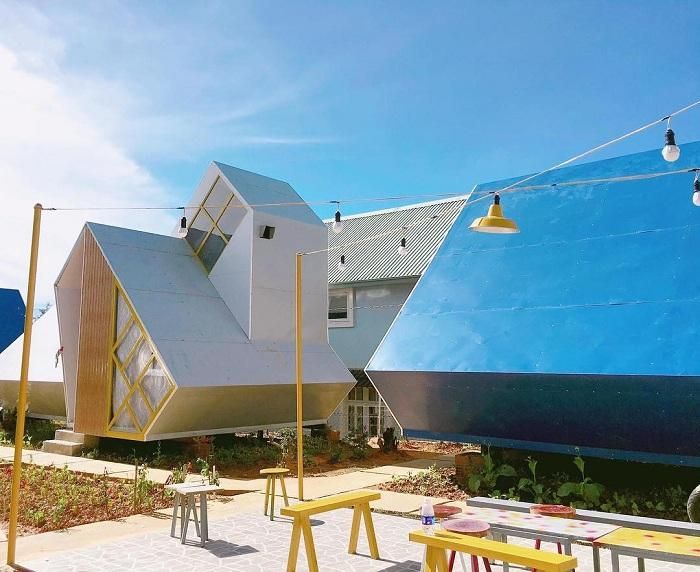 CallDa Lat has become a familiar and beloved destination for young travelers, but with so many homestays available, it can be overwhelming to choose the right one. Here's a hidden gem for you: the newly opened Légume Guest House. It's not only affordable but also stands out with its unique design, providing a perfect spot for socializing, making new friends, and capturing stunning photos for your social media. Légume Guest House features individual rooms nestled within a lush garden cultivated by Ba Légume. Each room is uniquely shaped like a five-sided polygon, making this homestay stand out from the crowd.