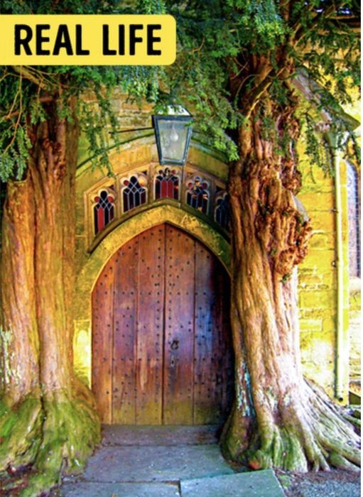 St. Edward's Church is located in the town of Stow-on-the-Wold in Gloucestershire, England. Built in the 12th or 13th century, the church has been expanded and modified over the centuries. Originally a Catholic church, it became part of the Church of England in the 16th century. The church's doors are truly unique, flanked by two ancient trees, some of the oldest in the world. It’s likely that the striking and mystical design of Durin's Door in 'The Lord of the Rings' was inspired by this extraordinary church entrance.